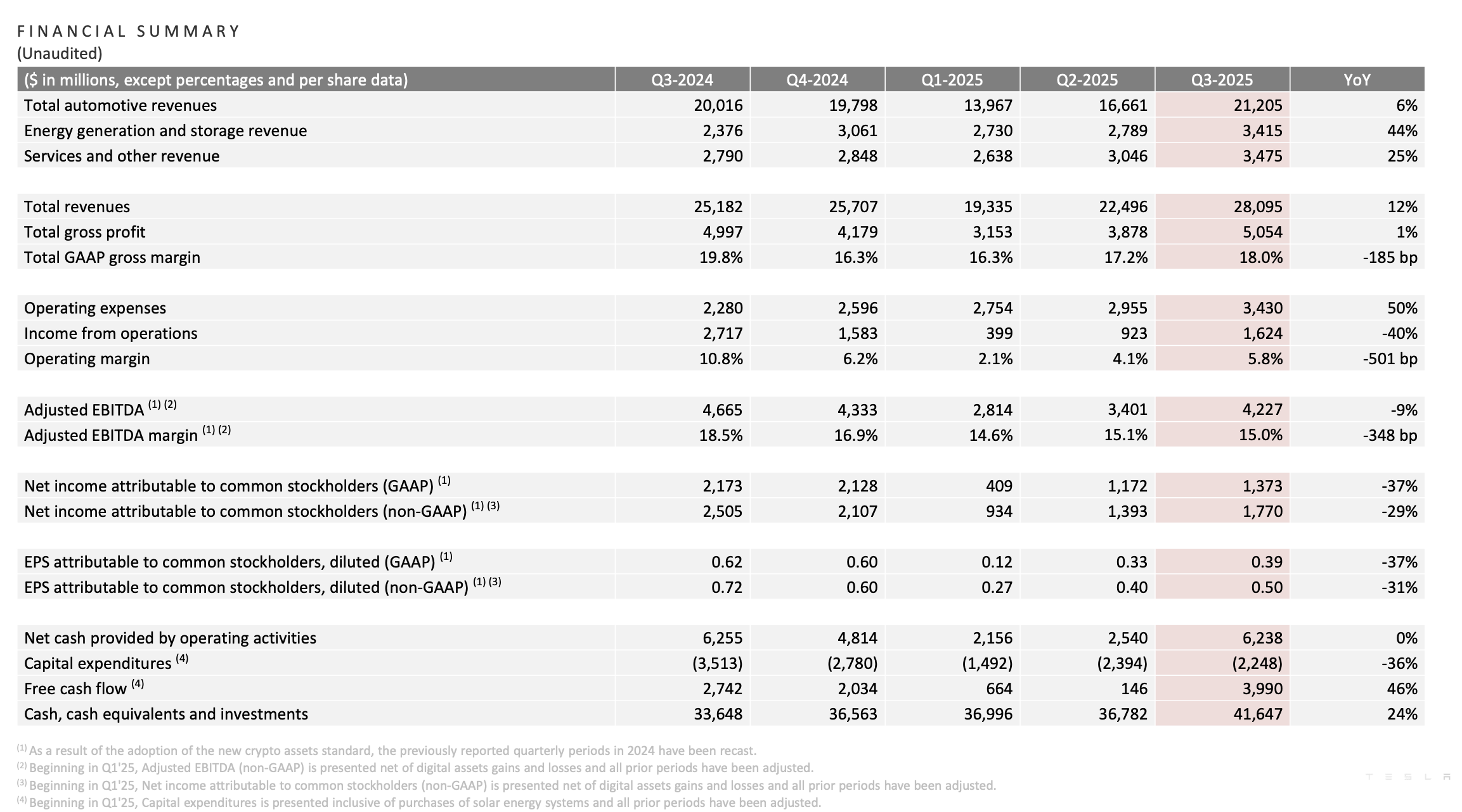 与此同时,特斯拉并未在三季报中披露业绩指引,并表示在全球贸易与财政政策变化的背景下,汽车与能源供应链、成本结构及耐用消费品需求的影响难以量化。