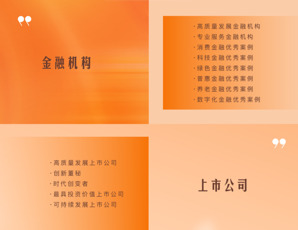 自设立之初,“时代金融金桔盛典”便着眼“风控、服务、改革”,致力于发现金融业及上市公司各领域的优秀案例,记录中国金融业的发展变迁,旨在汇聚更多的智慧与力量,以应对未知的市场环境变化,共同助力金融践行为实体经济服务的天职,为中国经济的高质量发展提供更有力的金融支持。