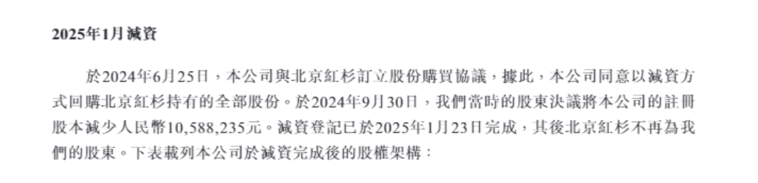 2024年6月,溜溜果园与A轮投资者北京红杉信远股权投资中心(有限合伙)(以下简称“北京红杉”)签订股份购买协议,回购其手中持有的全部股份。