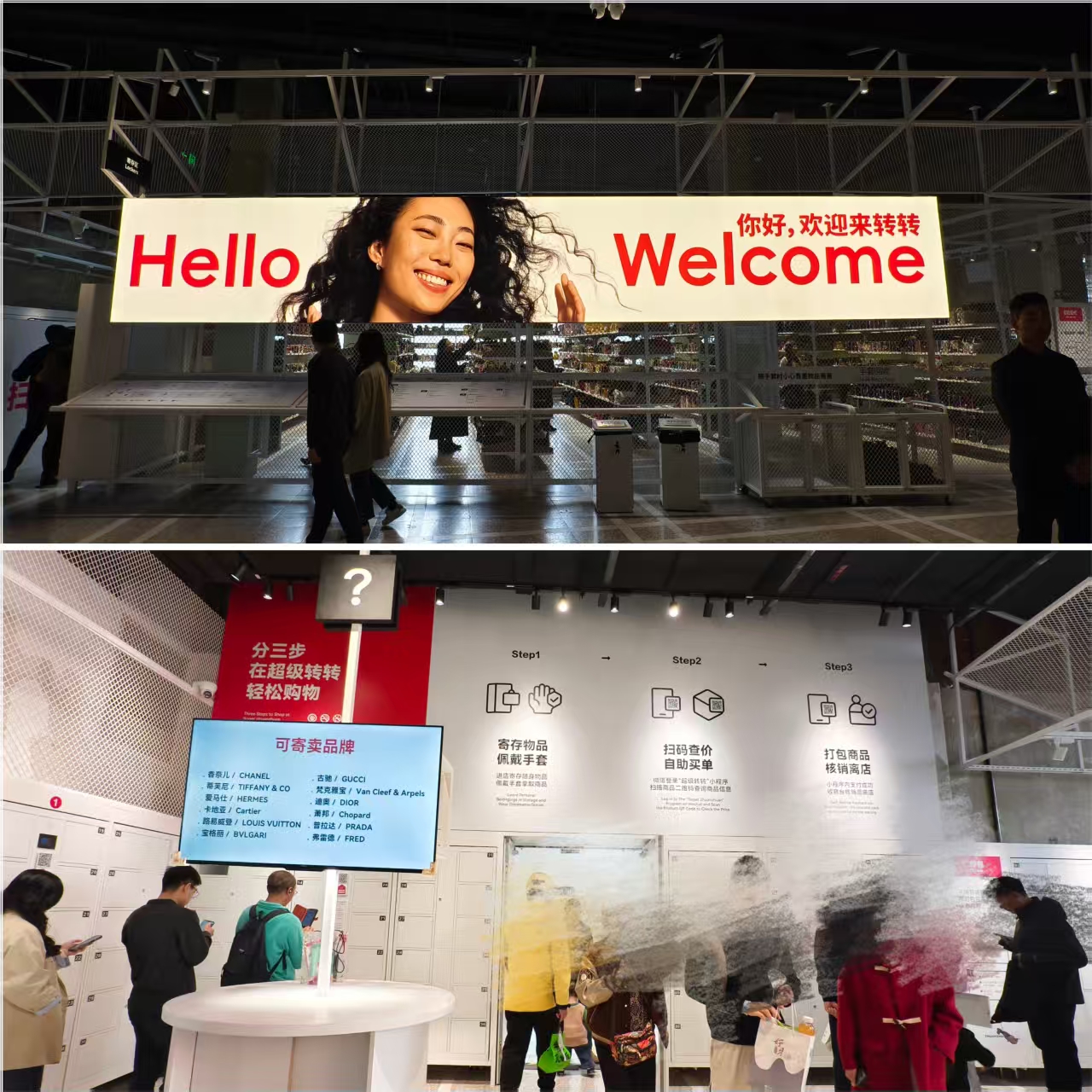 线下门店最重要的目的在于搭建“看得见的信任”。黄炜解释布局线下时表示,“我们想通过商场门店向消费者证明二手也能有规范体验。”转转1000余家线下门店承担 “到店消费和即时回收” 的双向服务,避免邮寄回收的“估价争议”。门店包裹存放处的电子屏滚动提示可寄卖商品,涵盖上百个奢侈品品牌。
