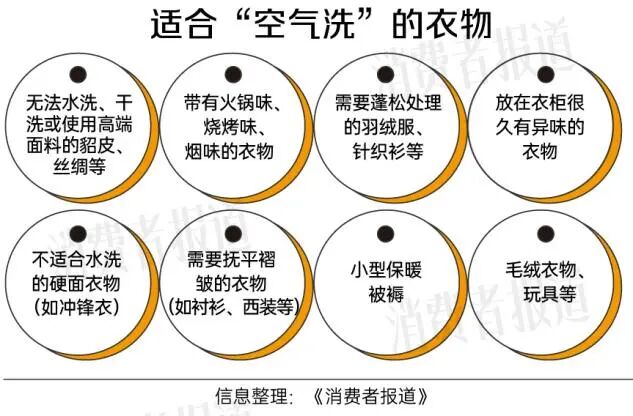 因此,使用“空气洗”的前提是衣物没有肉眼可见的脏污,不需要对衣物“去污”。