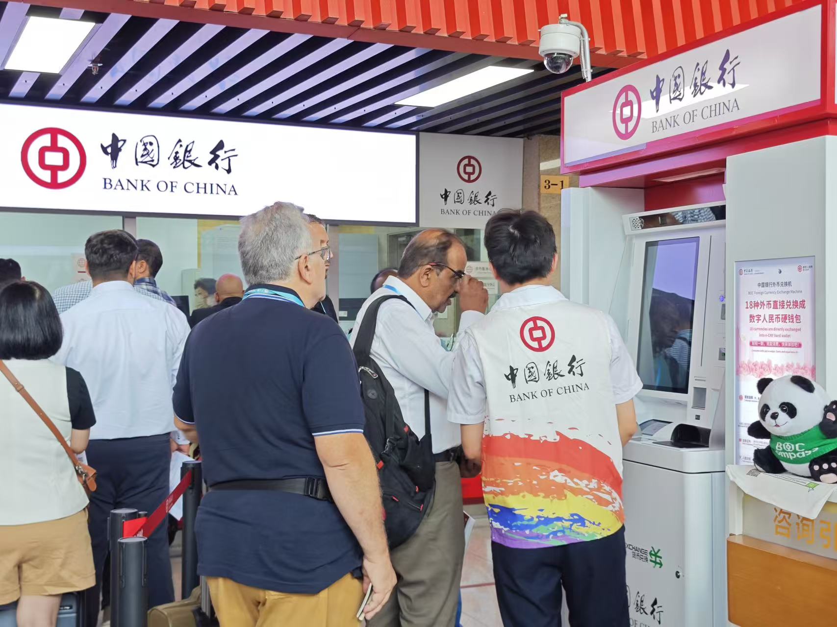 当医疗机器人等大批新质生产力展品闪耀会场,中国银行的服务之光亦温暖在场的每一个人。年内乔迁新址的广交会支行,成为中外客商“金融驿站”。展会期间,中行广州广交会支行焕新投入了10个现金柜台、8台ATM机、5台智能外币兑换机,通过跨境汇款快速通道、智能柜台打造智慧服务矩阵,实现业务快捷办理。作为唯一一家在展馆ABCD四区均设置了服务点的银行机构,中国银行投入超300名志愿服务者,为中外客商提供展会引导、现场翻译、外币兑换、金融咨询等贴心服务。展会期间,中行广州广交会支行智能设备累计线上处理外币兑换业务超4500笔、交易额约176万美元,较上届增长38%。
