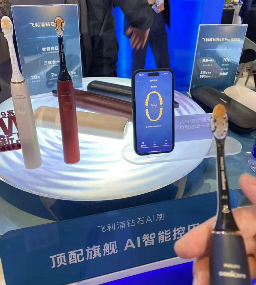 今年进博会期间,飞利浦首发旋护新9系Pro剃须刀,以满足消费者从“面部剃须”到“全脸肌肤健康管理”的需求升级。此外,还在进博会首秀其针对中国春节喜庆氛围推出的全新勃艮第红钻石AI电动牙刷,产品的一大卖点是搭载SenseIQ智能感应科技,可以通过无死角精准感应,一键开启全效口腔守护。