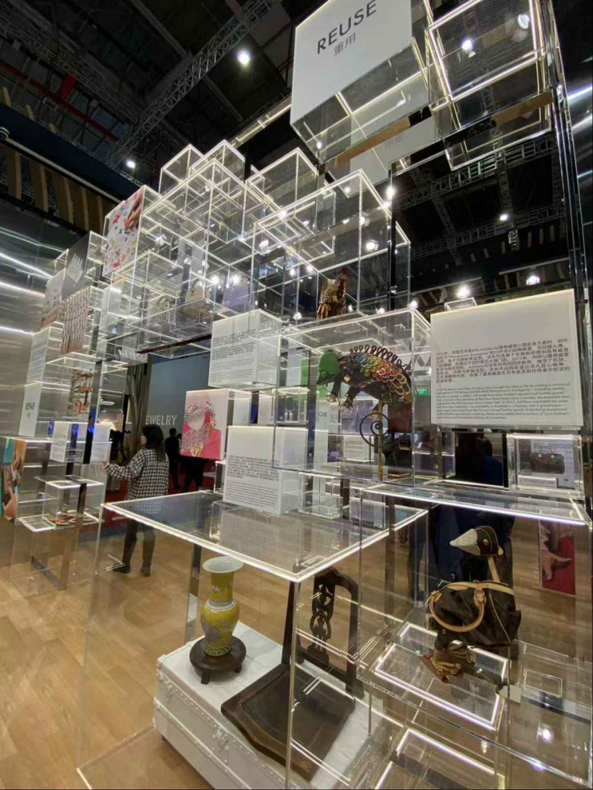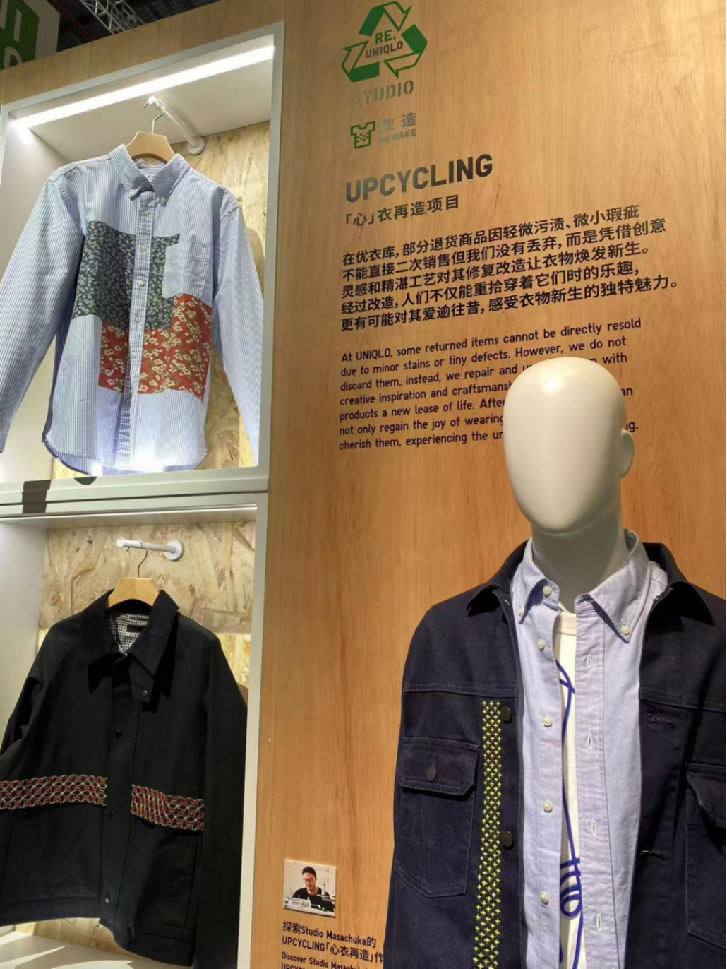 本届进博会,不少时尚品牌都展示了环保创新产品及举措。如优衣库通过UPCYCLING“心衣再造”项目对轻微瑕疵服装进行重新设计,赋予其二次生命;手工刺绣服务则通过几何图案刺绣修补、加固衣物,延长其使用寿命。Lv品牌也在进博会展示了其环保改造产品。