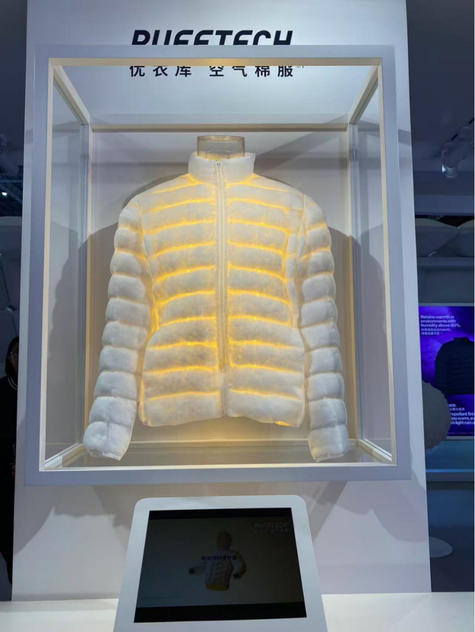 该品牌还展示了今年首次推出的男装9%羊绒款HEATTECH保暖内衣,比轻舒暖系列提升了近1.5倍的温暖。此外,还有采用3D极细中空纤维制成的高机能填充物填充的PUFFTECH空气棉服,以及最新升级的科技保暖外套。