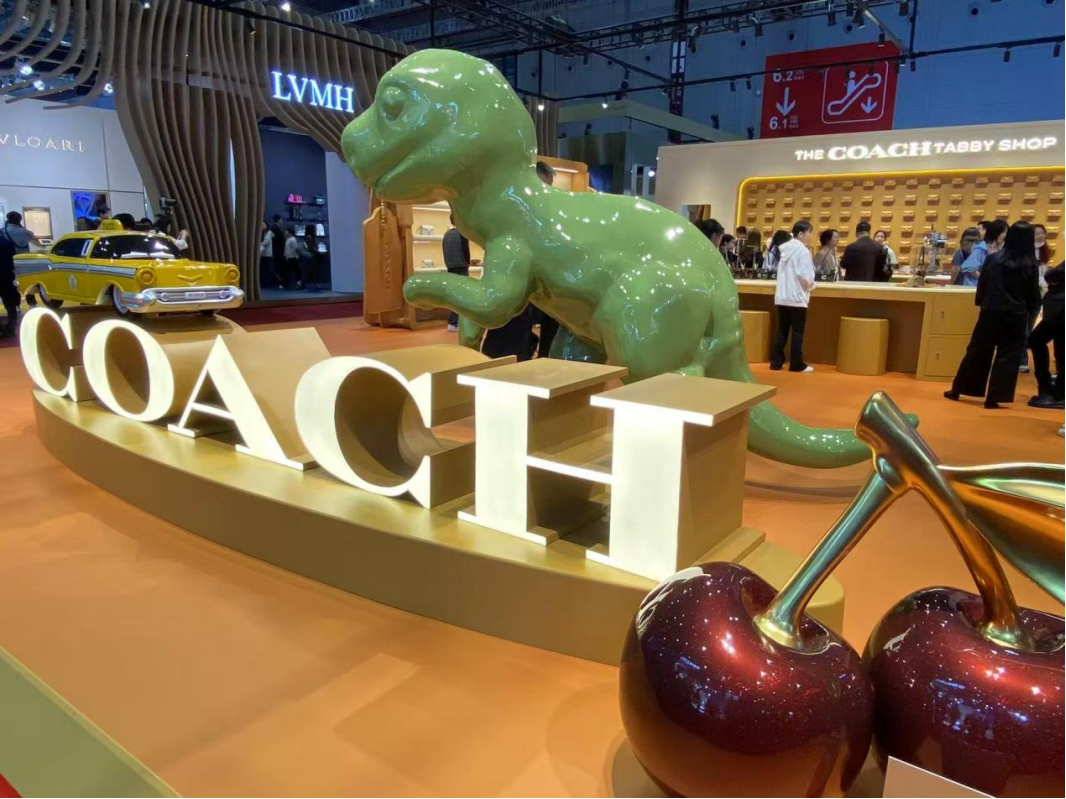 泰佩思琦(Tapestry)集团旗下品牌蔻驰(COACH)连续第七年参展进博会,今年以“the COACH tabby shop”为主题,携标志性Tabby系列及二十余款全球首发首展新品亮相。展区内的巨型恐龙、巨型Tabby手袋及各式趣味装置吸引了不少人过来打卡。