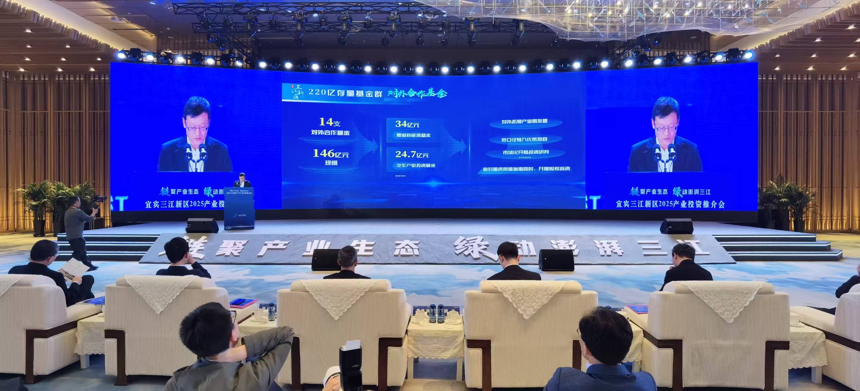 宜宾三江新区2025产业投资推介会通过链接数字经济、绿色新能源等主导产业优质资源;汇聚顶级基金金融机构;聚焦“延链、补链、强链”产业集群协同发展;共绘绿色经济高质量发展新篇章。此次推介会充分展现了宜宾三江新区产业高质量的丰硕成果、向新向绿的发展目标以及聚链汇能的发展潜力,宜宾三江新区将以本次产业投资推介会为契机,进一步深化与参会嘉宾沟通交流,寻找更多合作商机。