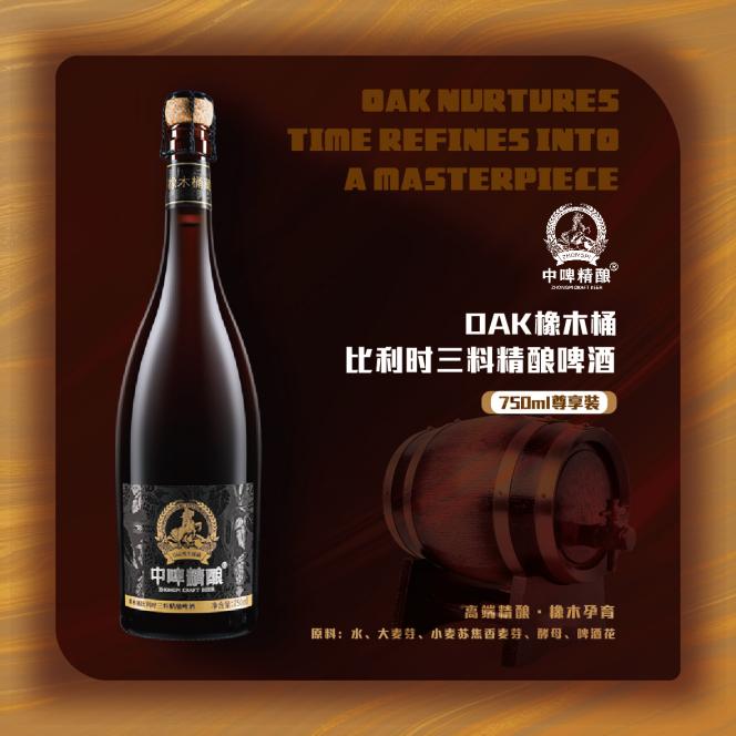 中啤橡木桶精酿啤酒通过将经典的比利时三料啤酒在橡木桶中进行二次陈酿,啤酒不仅获得了橡木带来的香草、椰子等风味物质,更在桶内发生了复杂的微氧化反应,使得酒体更加圆润,风味愈发复杂。