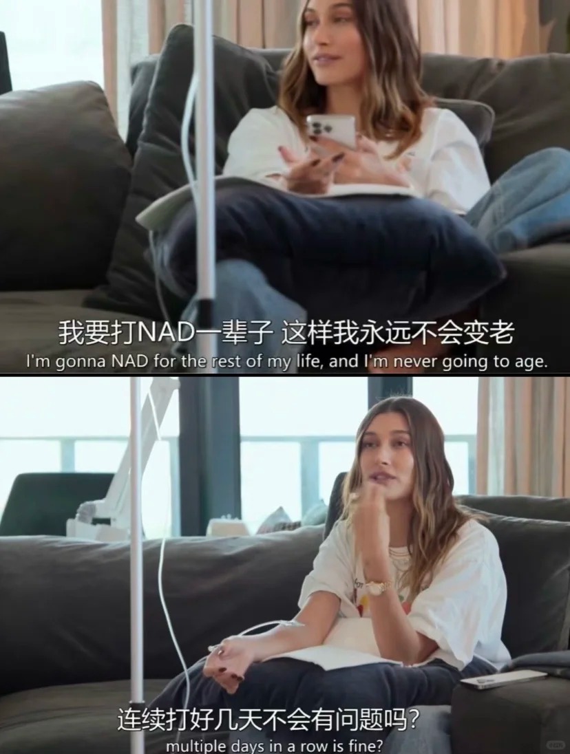 NAD+素有“好莱坞回春剂”之称,在海外,注射是比口服更风靡的补充方式。通过静脉、肌肉或皮下注射,可以绕过消化道,提高生物利用度。贾斯汀·比伯、Lady Gaga和卡戴珊等多位明星都曾公开表示使用过此类疗法。然而,在中国内地,这类注射型NAD+补充方式尚未获得国家药品监督管理局的临床批准。