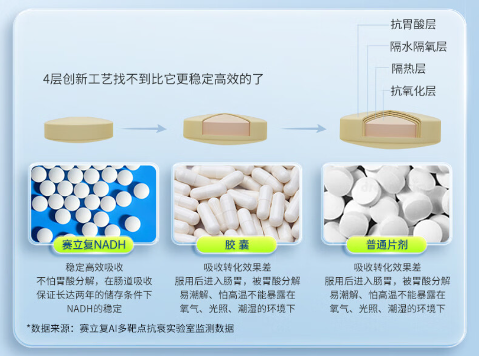 市售NADH宣称“1粒顶4粒” 图源:电商购物平台