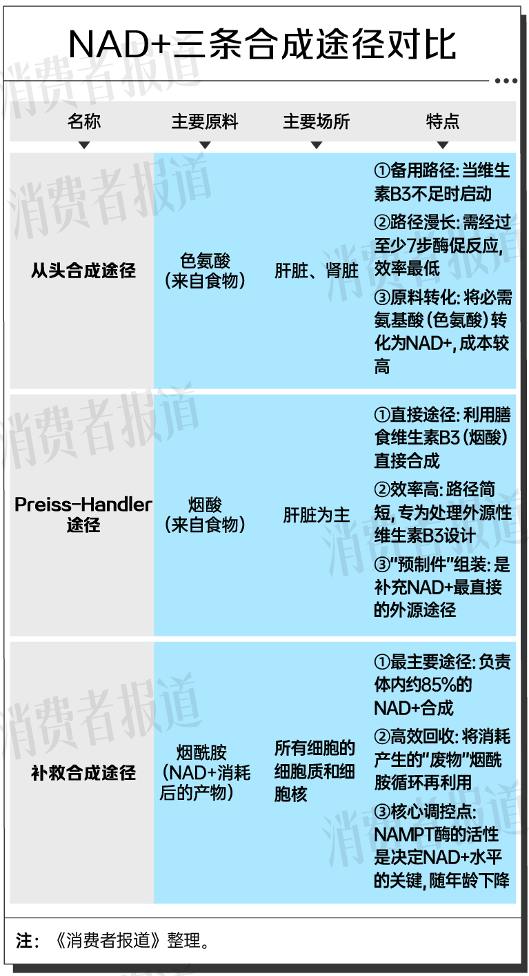 NAD+抗衰的机制是通过提升其在体内的水平,从源头改善机体的整体健康状态,从而让青春“流逝”得更慢一些。那么,人体中的NAD+来自哪里?我们应该如何补充?