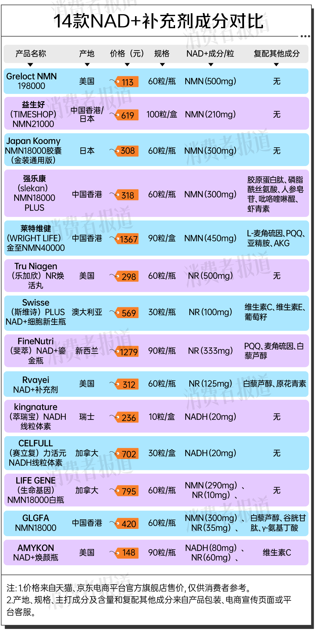 14款NAD+补充剂对比:有效成分含量不一,价差近25倍