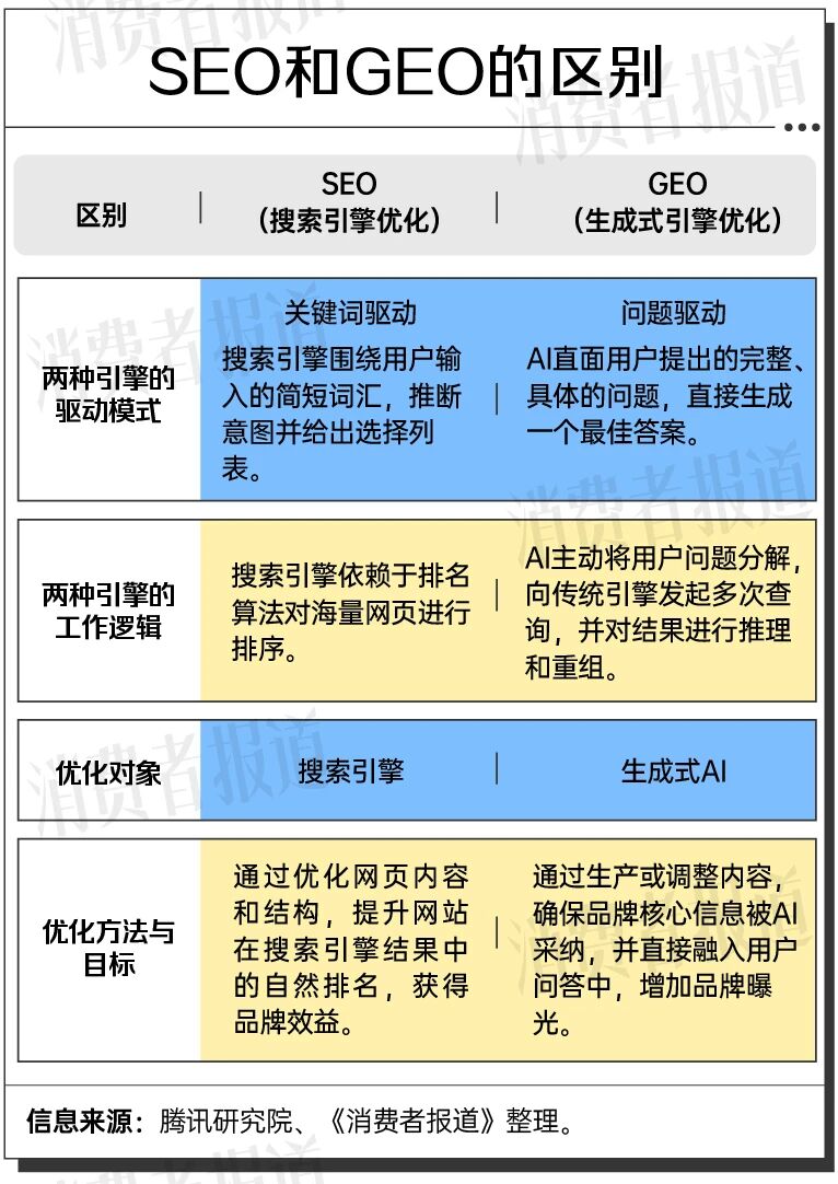 对于GEO服务的发展,弯弓研究院长梅波曾公开表示,GEO是一个超千亿的新兴市场机会。腾讯研究院研究认为,AI时代,营销越来越品牌化。GEO的效果更偏向于品牌层面,它最直接的反馈是在AI的回答中提升品牌的可见性。