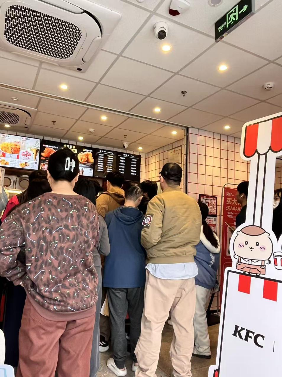 11月21日上午10点29分跳转至30分的瞬间,位于广州市天河区的一家肯德基chiikawa主题门店大堂的工作人员还在向现场的消费者表示,“活动暂未开始,等到系统更新”,然而,此刻门店后厨便传来工作人员急切的喊声:“订单来了!天啊!已经42份了。”“赶紧全都来帮忙!小腿全部下锅,可乐打100杯准备着都可以。”
