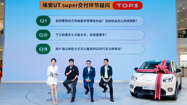 对于部分用户关心的“售后责任归属”问题,广汽方面表示“所有售后问题由广汽负责”;关于“交车时间与提车渠道”,广汽和京东方面详细介绍了其线上线下融合的“国民好车”交付网络,表示用户支付尾款后2至4周内即可完成提车;广汽更强调,11月30日24点前下订的用户,如因生产、运输等其他因素导致延期至2026年交付车辆而产生的购置税,广汽将全额补贴;而针对用户关心的换电网络建设,宁德时代表示2025年巧克力换电将在全国45个城市建成1000座换电站,并规划2026年在140个城市累计建成2500座,同时开放加盟,用户可通过巧克力换电APP或微信小程序查看周边的巧克力换电站具体信息,下个月还将上线新功能,支持用户实时查询“待开业”和“建设中”站点的具体开业时间。