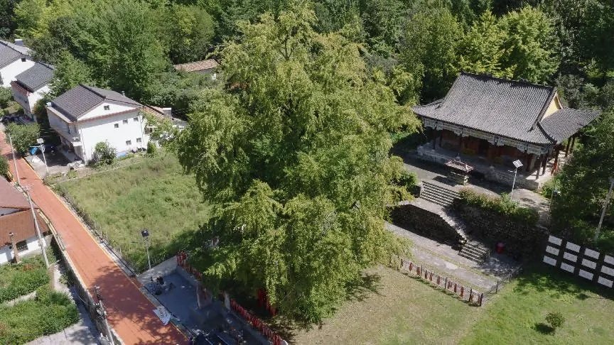 佛坪西岔河镇三教殿村仙果寺,“藏”着一棵约1500年树龄的银杏树,被当地居民视为“神树”