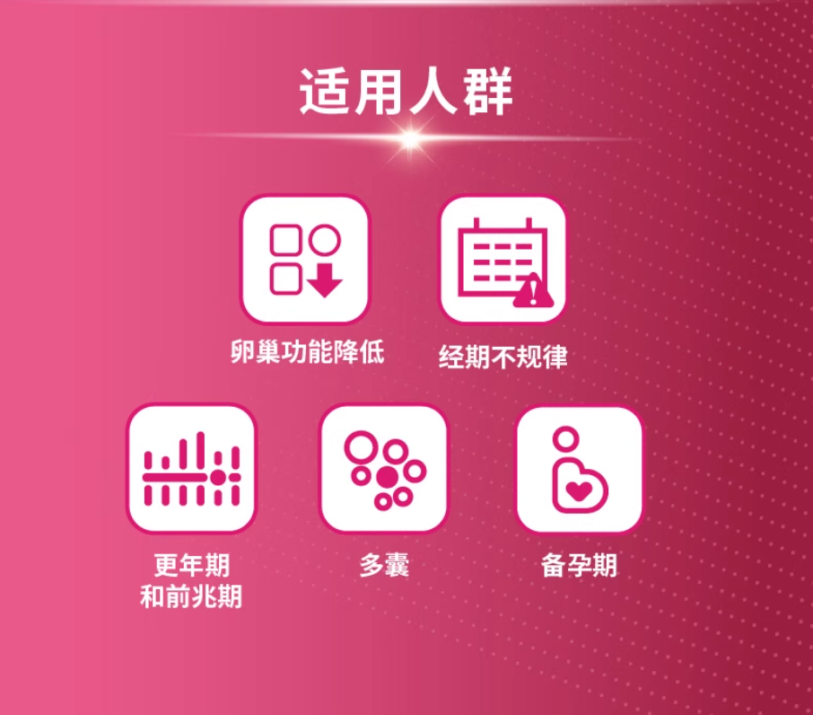 女性卵巢健康也是PQQ补充剂的主流应用方向之一。ESTHELIV(研生之力)OVARIAN巢天骄胶囊、Vegitalk养巢丸2款均搭配了“40:1”的肌醇、D-手性肌醇,宣称适用经期不规律、更年期、备孕期等人群。