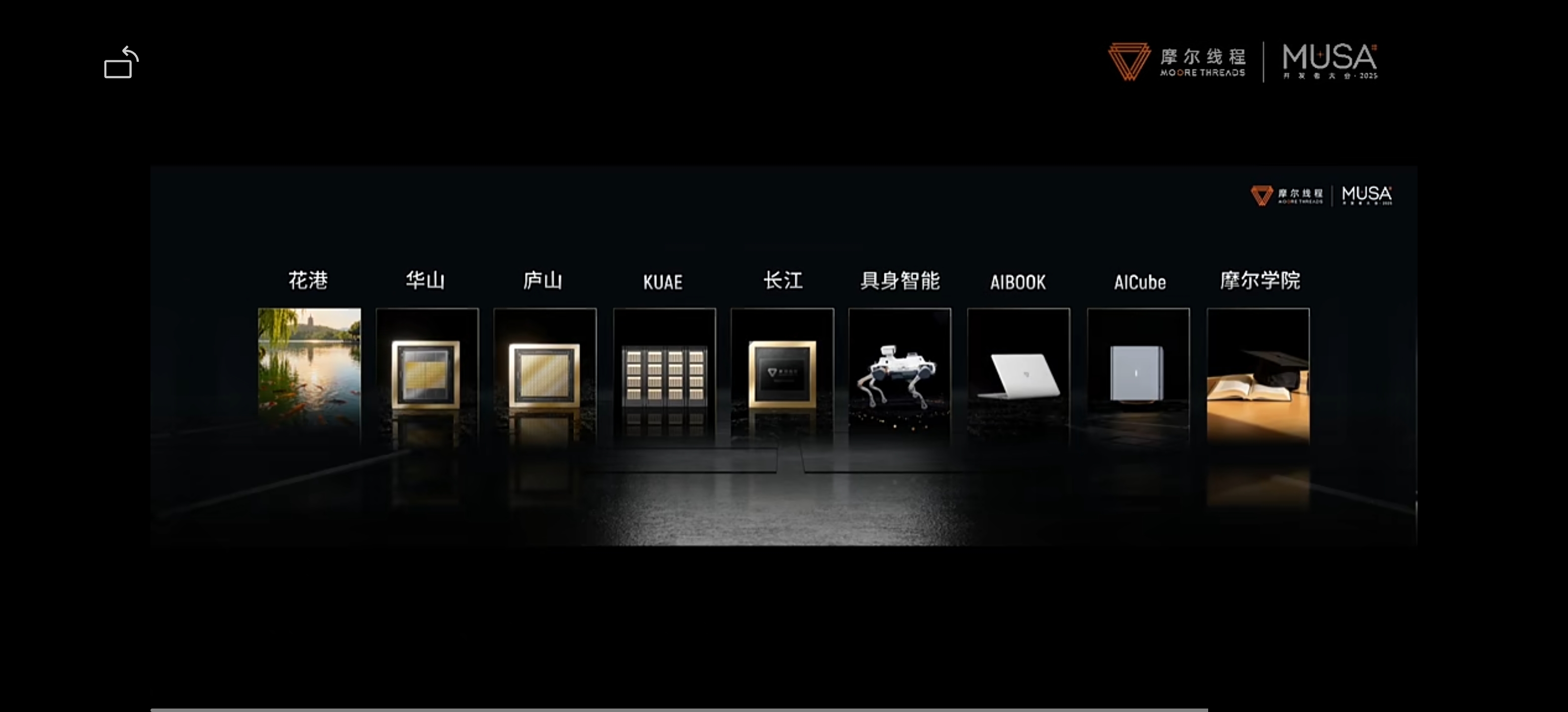 12月20日-21日,摩尔线程首届MUSA开发者大会(MDC 2025)举办,摩尔线程创始人、董事长兼CEO张建中一连公布了一系列技术与产品进展,其中包括全新架构“花港”,基于该架构的“华山”、“庐山”芯片,智能SoC芯片“长江”,以及夸娥万卡智算集群和AI算力本MTT AIBOOK等。
