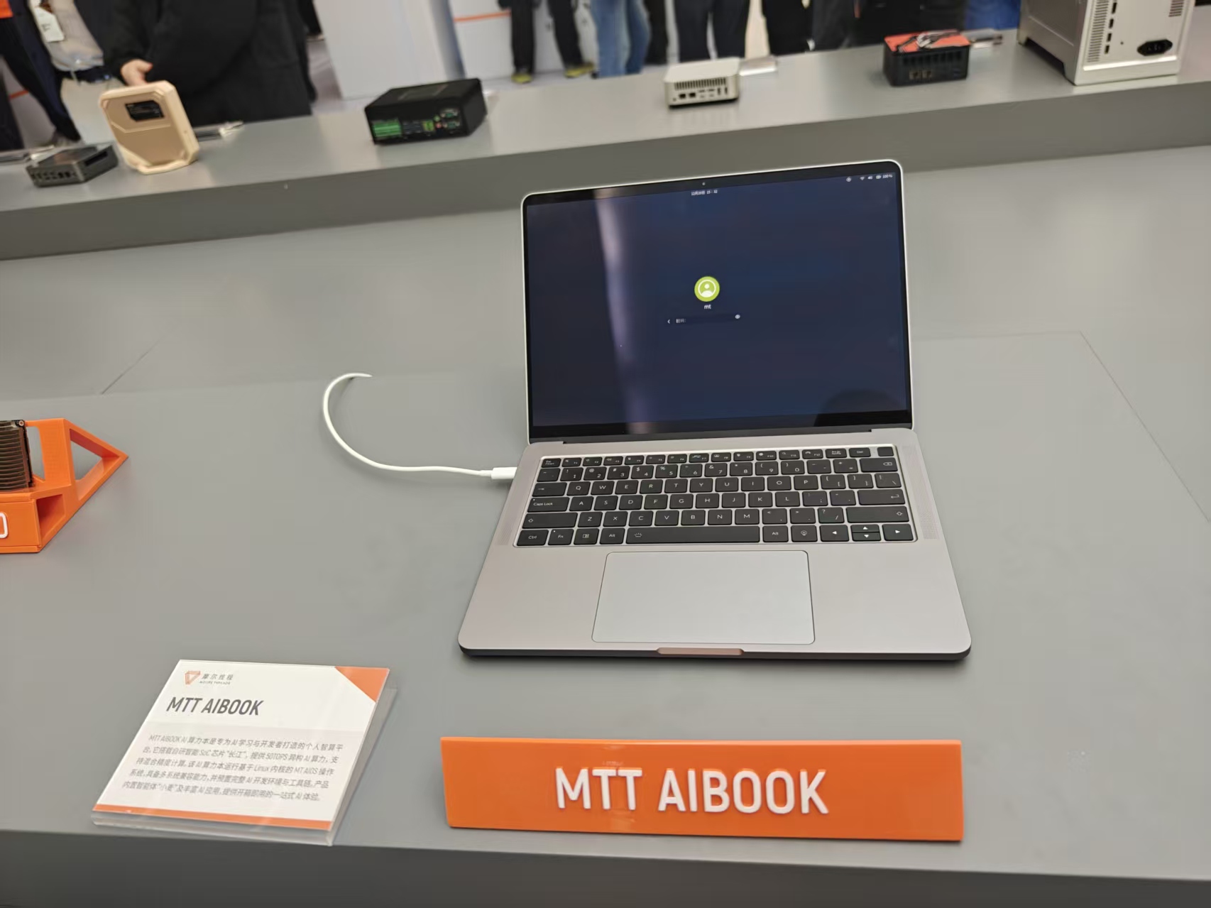 除了芯片和智算产品外,摩尔线程还发布了搭载智能SoC芯片“长江”的AI算力本MTT AIBOOK,提供了50TOPS的端侧AI算力,支持包括MT AIOS(Linux)、Windows虚拟机、Android 容器和国产操作系统等多系统切换,支持开发者在不同环境下开发各种国产应用场景。“我们把AI原生的应用场景都内置在这一台AIBOOK中,它是一台多系统随意切换的,结合开发、娱乐、办公于一体的(算力本)。”张建中表示。
