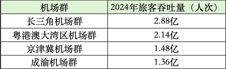 民航局数据显示,2024年,长三角和粤港澳大湾区机场群旅客吞吐量均已超过2亿人次。随着广州白云T3启用以及新机场推进,粤港澳机场群的整体吞吐能力仍有望继续抬升。