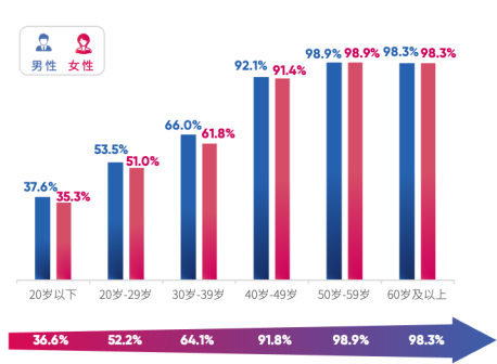 随着年龄的增长,眼底异常检出率逐渐升高,特别是40岁及以上人群,眼底异常检出率迅速攀升至90%以上,每10人中就有超9人存在异常,其中,视网膜血管异常作为头号眼底异常,40岁及以上人群的检出率更是40岁以下人群的9.3倍。