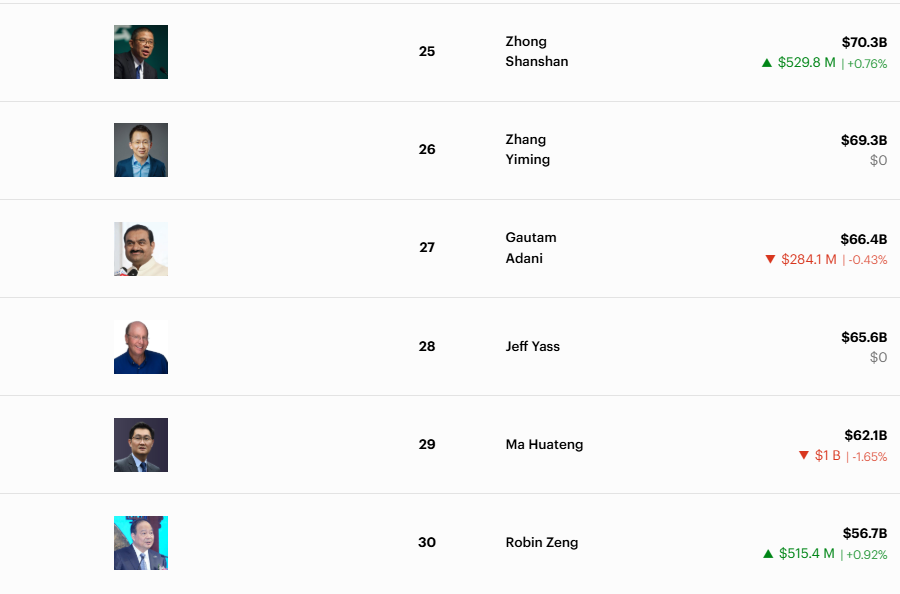 紧随其后的是字节跳动创始人张一鸣,个人财富为693亿美元,较年初增加了38亿美元,目前在福布斯最新富豪榜上,亚洲排名第3,全球排名第26。
