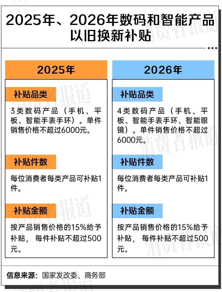 2026年“国补”新鲜出炉:家电数码补贴15%,智能眼镜首次入围!