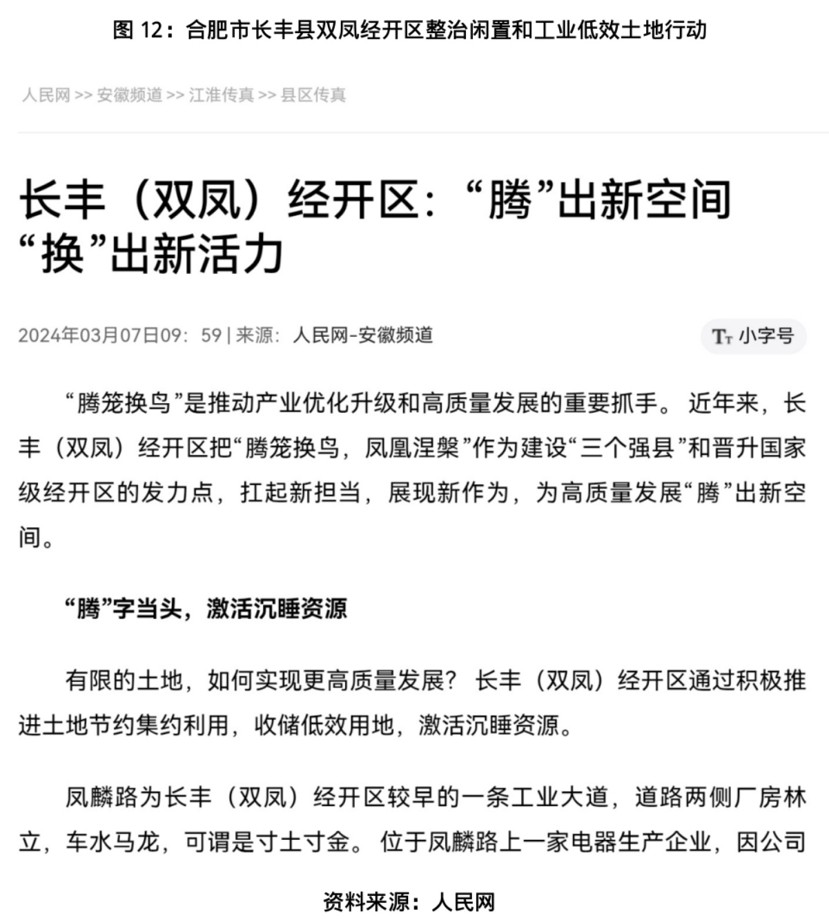 值得注意的是,据人民网报道,近年来安徽省正纵深推进批而未供、闲置和工业低效土地全域治理攻坚行动,合肥市长丰县双凤经开区通过“腾笼换鸟,凤凰涅槃”等举措盘活存量低效用地的做法,已在全省形成示范效应。