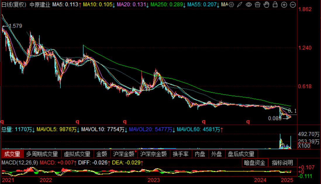随着光环褪去,资本市场对于中原建业的青睐度大幅下降。1月27日收盘,中原建业股价报0.111港元/股,总市值4.29亿港元,较巅峰时(2021年6月3日)跌幅超95%。
