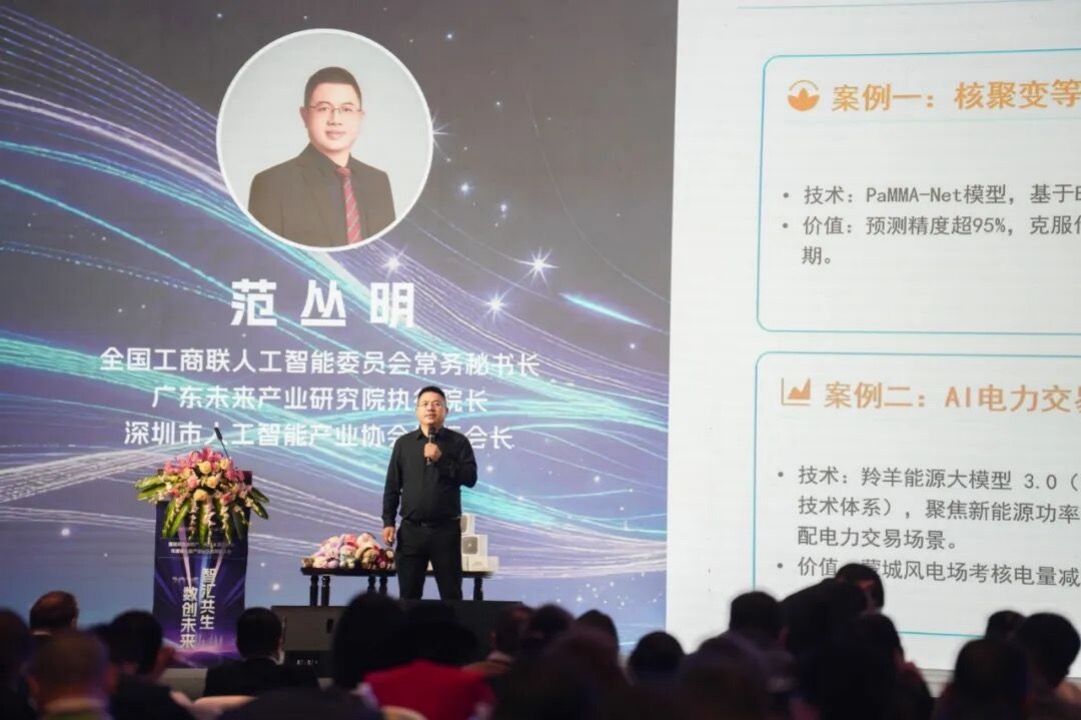 下午的AI应用峰会在期待中开始。全国工商联人工智能委员会常务秘书长范丛明首先发表题为 《“魔簧”时刻:AI智能体如何重构千行百业》 的演讲。他断言,AI发展已进入与产业深度融合的 “下半场” ,其标志是从技术突破走向价值创造。“魔簧”时刻,象征着AI智能体如钥匙般,开启各行各业效率与模式革命的关键节点。