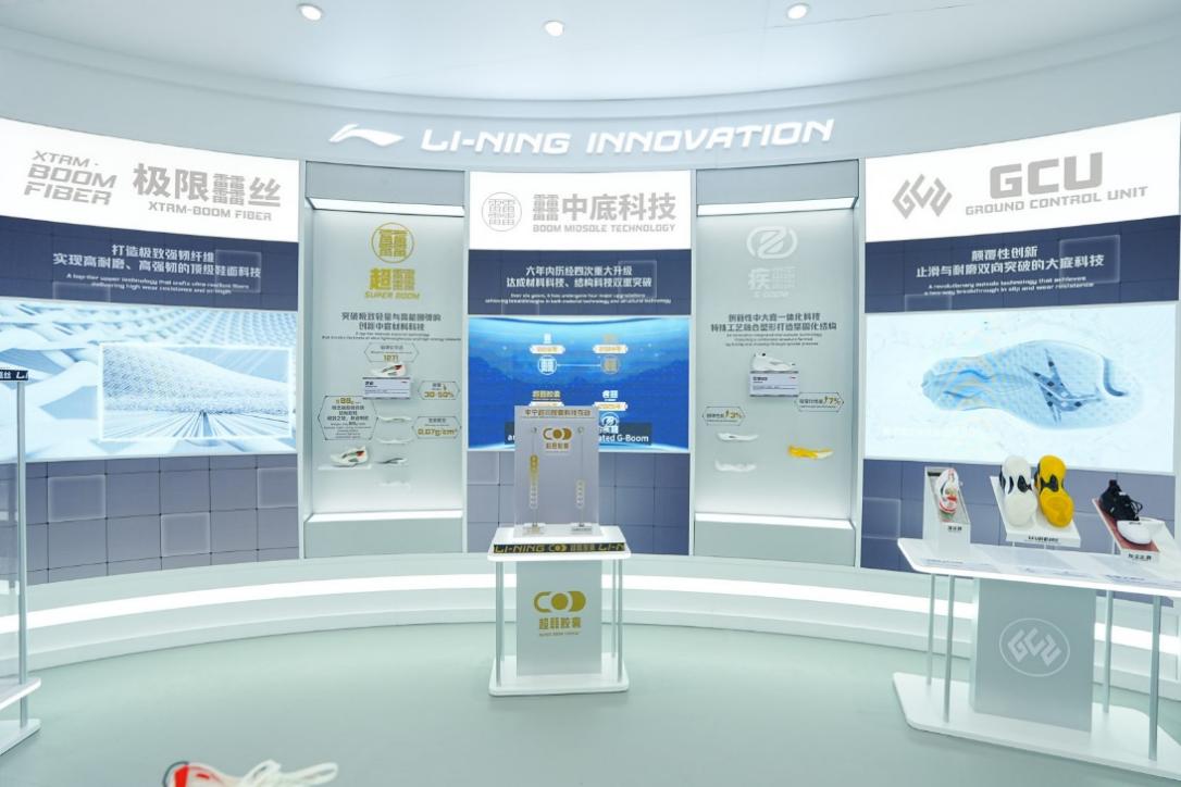 “守护中国文化”主题展区,呈现李宁与故宫博物院中国文化系列,李宁经典鞋款上中国传统工艺、材料、建筑灵感的运用,以科技、创新与拼搏精神融合之力,推动传统文化现代表达。