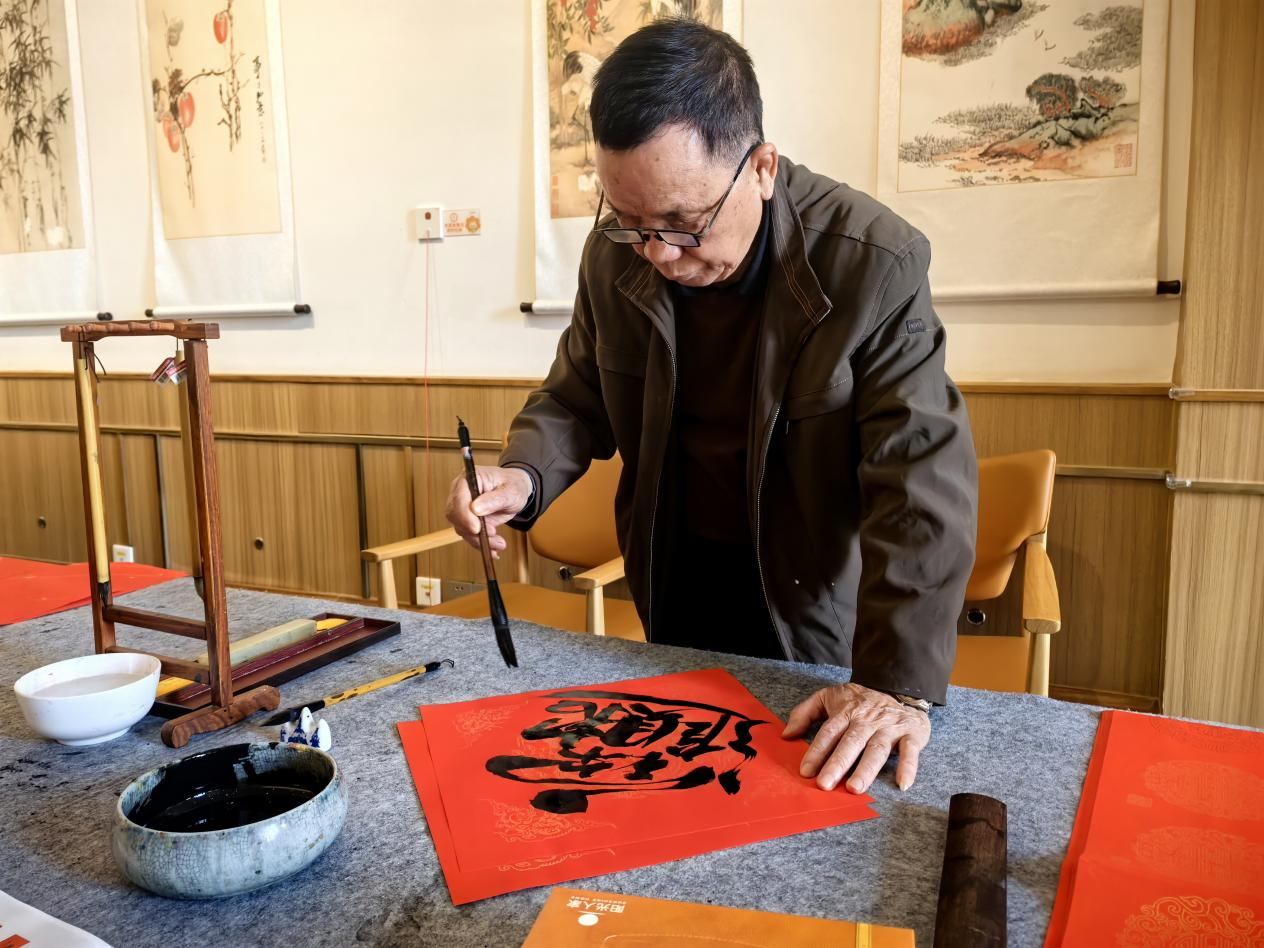 红纸铺展,墨香萦绕。2026年新春佳节前夕,阳光人家・广州康养社区活动大厅内暖意融融,广州市从化区楹联学会的书法家们早早铺毡研墨、挥毫泼墨,一个个遒劲有力的“福”字、一副副寓意吉祥的春联在笔尖流淌,送到社区长者手中。这场集“挥春送福”与“歌舞联欢”于一体的新春主题活动,让长者们在墨韵书香与欢声笑语中触摸传统文化温度,感受集体陪伴温暖,解锁了“满是温情的新春”。