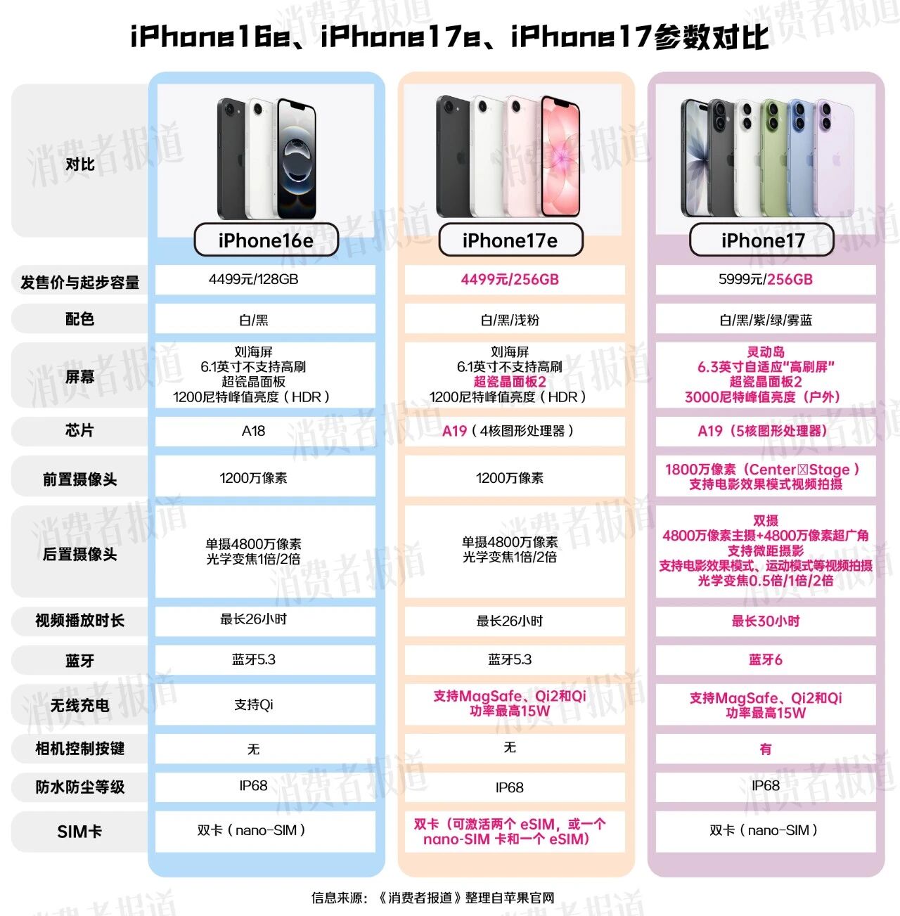 与iPhone16e、iPhone17相比,iPhone17e有哪些亮眼的配置升级?是否值得用户尝鲜选购?