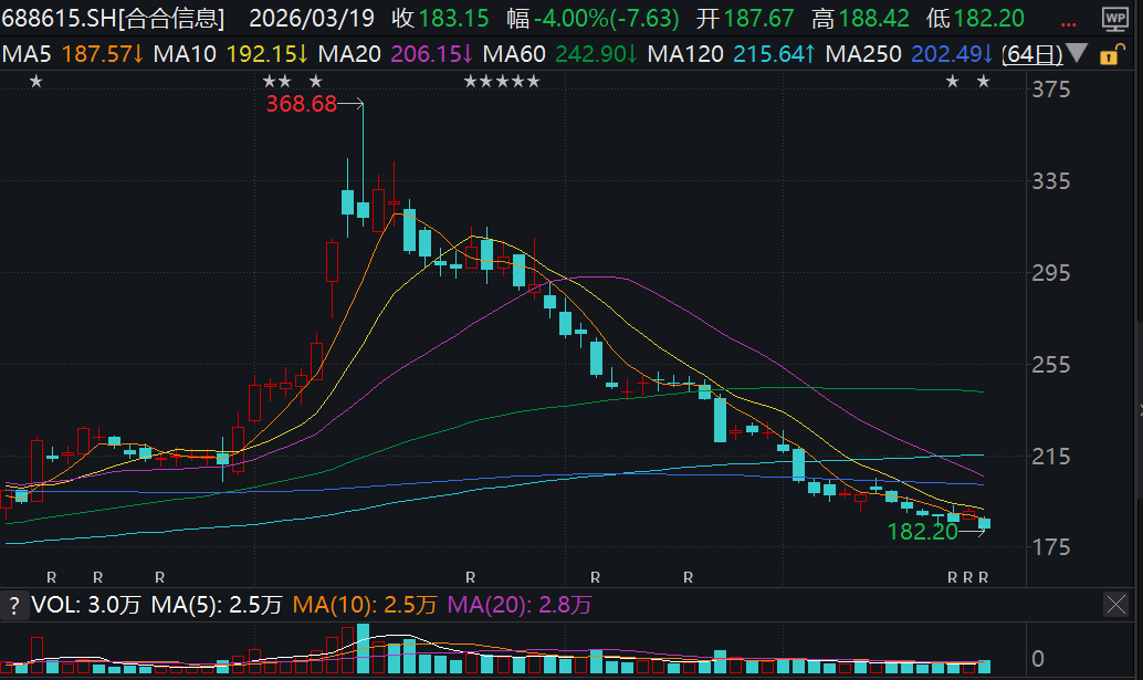 2025年年报披露后,合合信息的股价近日并未出现大幅波动,该股3月19日收盘时下跌4.00%,报收183.15元/股,总市值跌至256亿元左右。