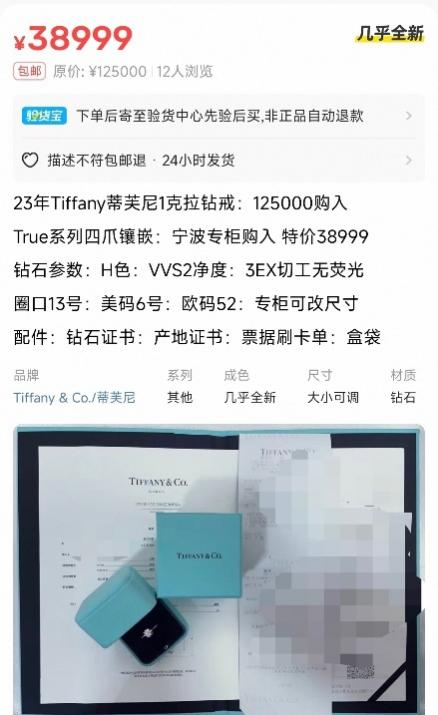 在某二手交易平台上,《消费者报道》记者发现,三年前12万多购入的某大牌1克拉钻戒,目前仅售3万多,跌幅高达69%。