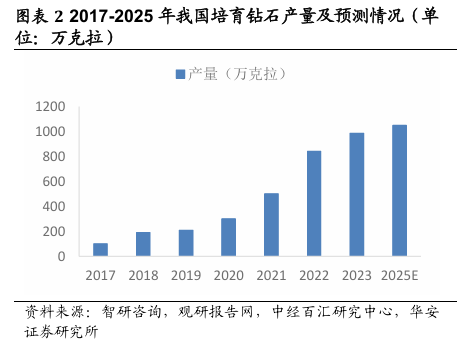 根据浙商证券预测,2022—2025年全球培育钻石原石需求从143亿元增至313亿元,复合增速35%。