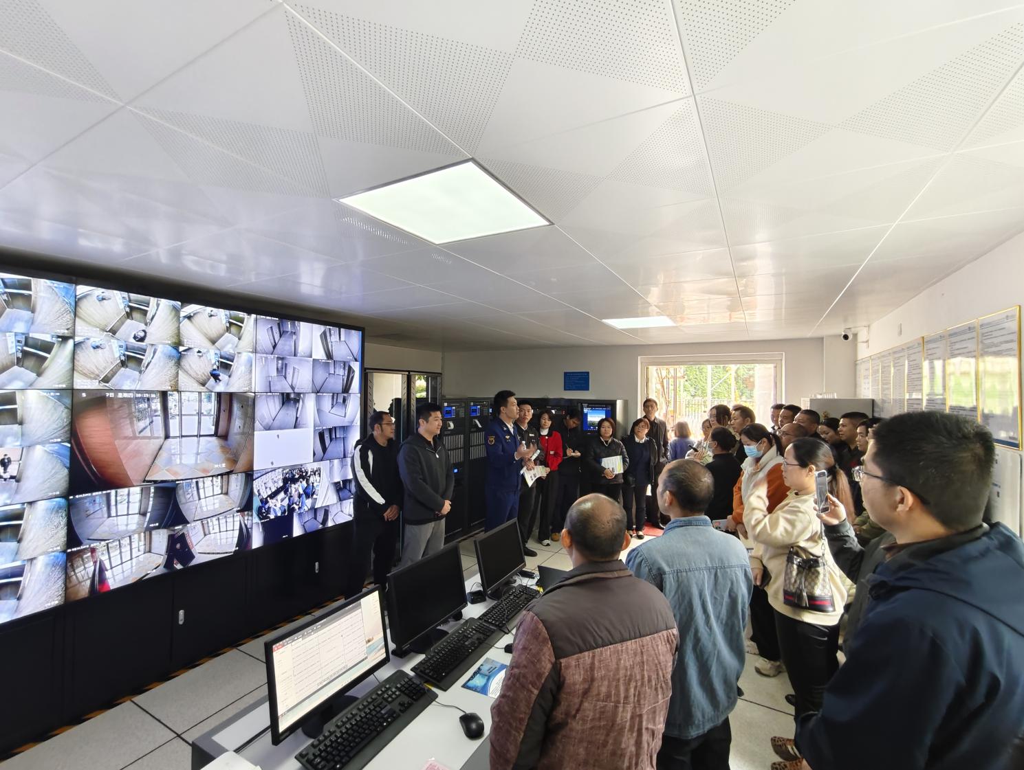 梅县消防牵头举办的消防安全现场会现场,40余家物业单位观摩远程消控系统的操作流程与火警处置全流程