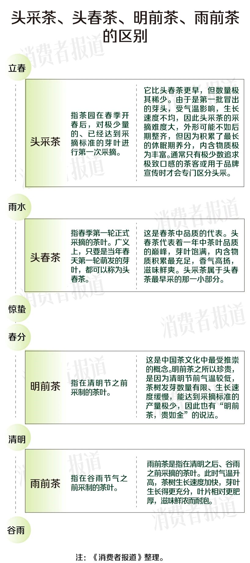 不过,在电商平台上搜索“春茶”,出现了“头采茶”“头春茶”“明前茶”“雨前茶”等各种名头。这些顶着春茶光环的茶叶,有何不同?