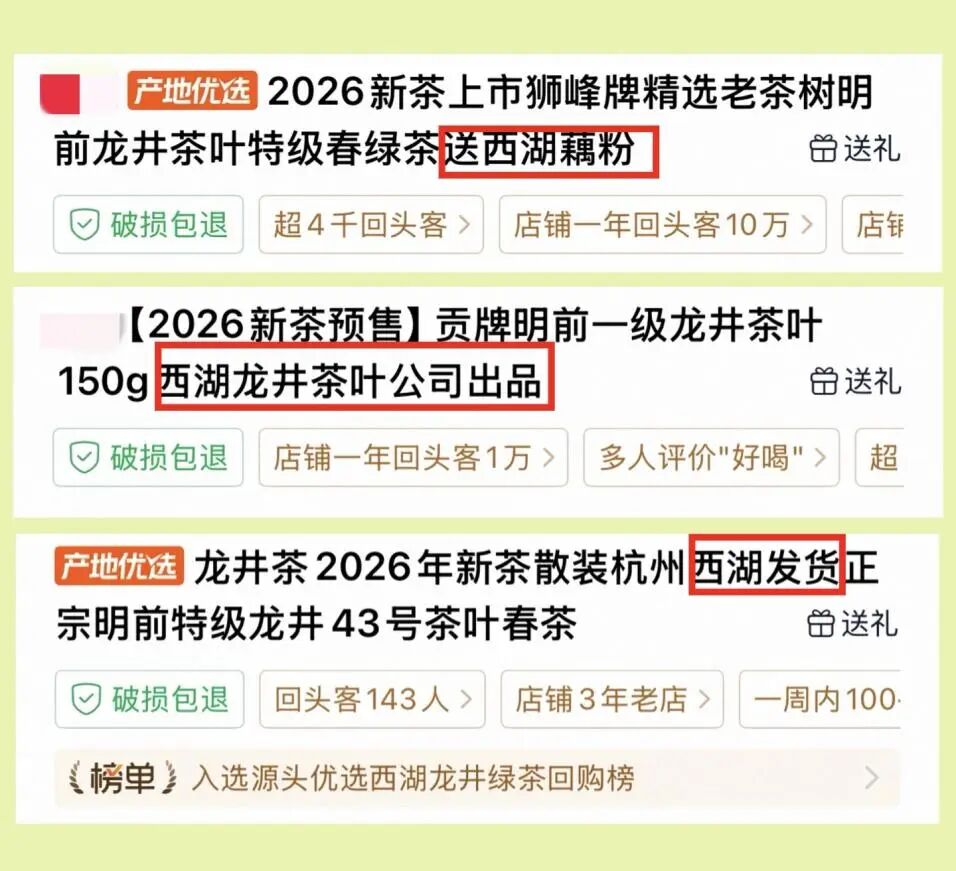 03. 送西湖藕粉、西湖发货……商家“碰瓷”西湖龙井套路多