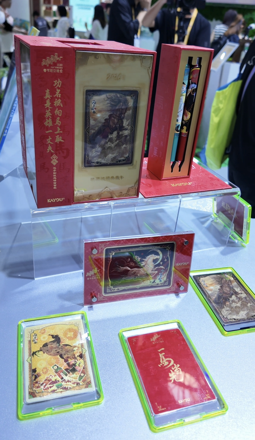 在上海馆内,卡游展出了一系列以骏马文化为创意核心的马年春晚联名收藏卡牌。据卡游品牌公关经理赵晨介绍,这是卡游首次参加消博会,也是卡牌品类首次亮相消博会。