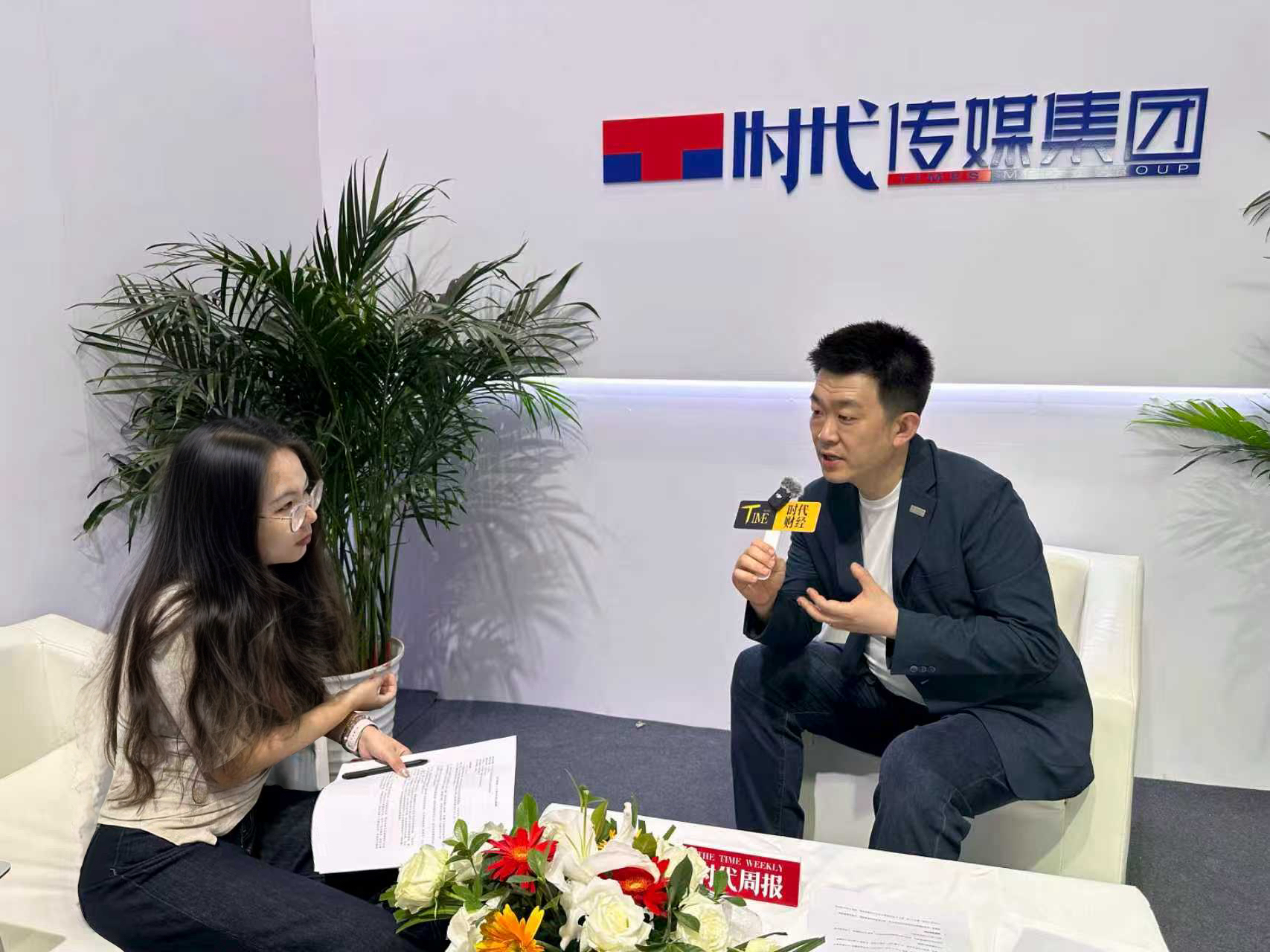 车企代表正在采访间接受采访 时代周报记者摄