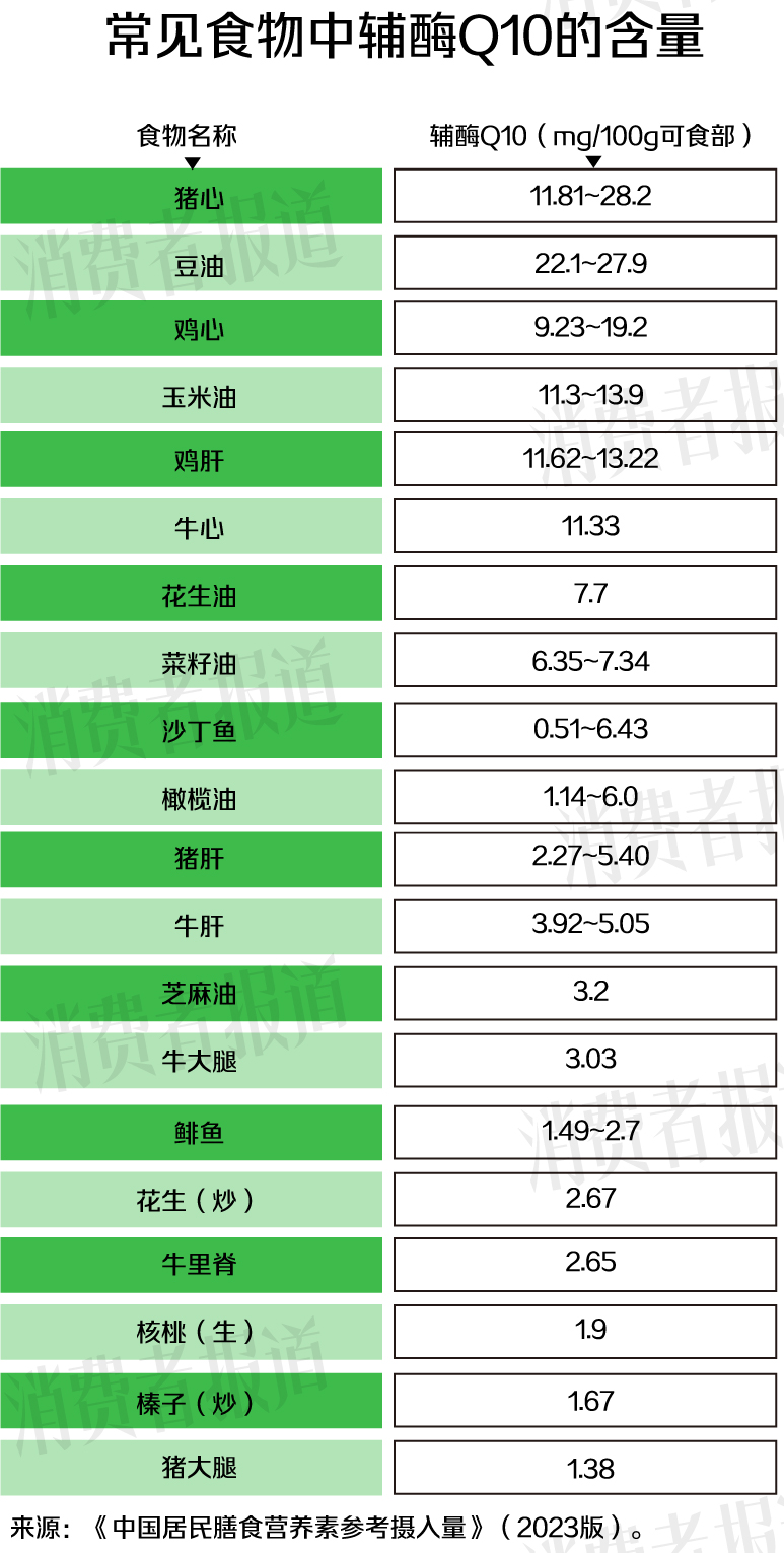 此外,辅酶Q10普遍存在于肉类、动物内脏、鱼类和植物油等食物中。对于普通人,尤其是健康的年轻人,通常无需担心辅酶Q10缺乏,也不必额外补充。如果要补充,因为辅酶Q10是脂溶性物质,建议随餐或餐后服用,吸收更好。