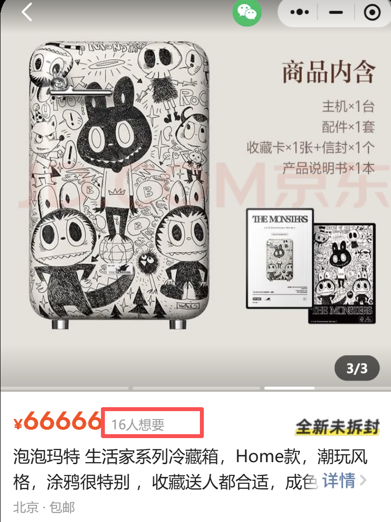 4月30日晚22点,两款全球限量共1998台的THE MONSTERS生活家系列-冷藏箱(下称“LABUBU冰箱”)在京东、天猫等线上平台正式开售!开售前5分钟,两款冰箱在京东上的总预约人数已突破10万,展现出顶流IP的强大号召力。