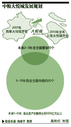 2010年11月,中粮集团董事长宁高宁透露,未来5-10年规划的商业资产总额将达到1000亿元以上,未来2-3年在全国复制10个以上大悦城,5-10年将在国内大中型城市布局约20个大悦城。