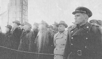 (图:1945年11月7日,苏联十月革命28周年纪念日,吉林长春,苏联红军举行大规模的庆祝活动。右二为国民党代表蒋经国。)