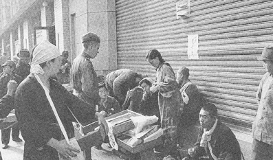 (图:1945年11月,吉林长春,日侨地摊前的苏联红军战士。)