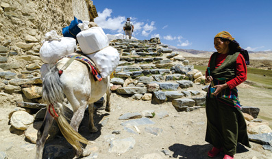 700年前的木斯塘是个繁荣昌盛的地方:既是佛教文化艺术重镇,又是连接西藏的盐矿和印度次大陆地区城市的最便捷的通道。当时的食盐可是世界上最珍贵的日用品之一,而在木斯塘的鼎盛时期,载着成包食盐的大篷车就在这里的小径上崎岖前行。