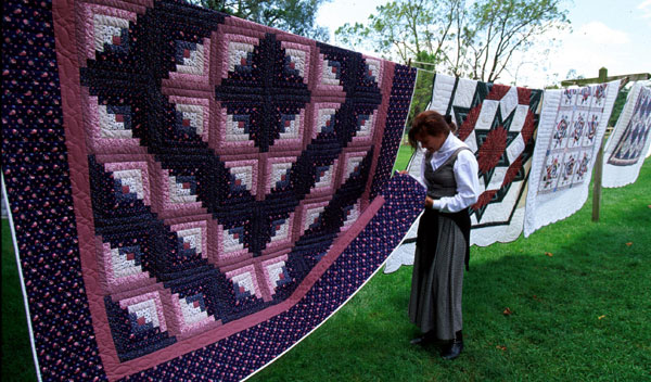 (图:阿米什族群妇女擅长制作手工拼布被。)
