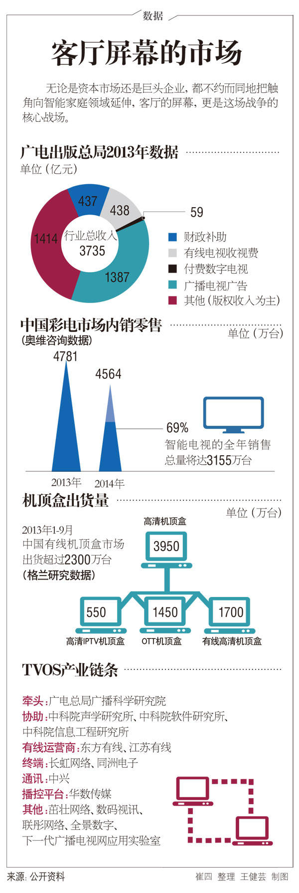可以看到,这其中不仅有广电系的干将,也有传统通信企业的参与。虽然有人认为,TVOS1.0是行业标准,但广电目前只是针对有线电视企业强制推行TVOS1.0软件的普及,对互联网企业尚不会产生较大影响。但产业式的阵营联盟形成之后,无疑会成为一股强势的制衡力量。