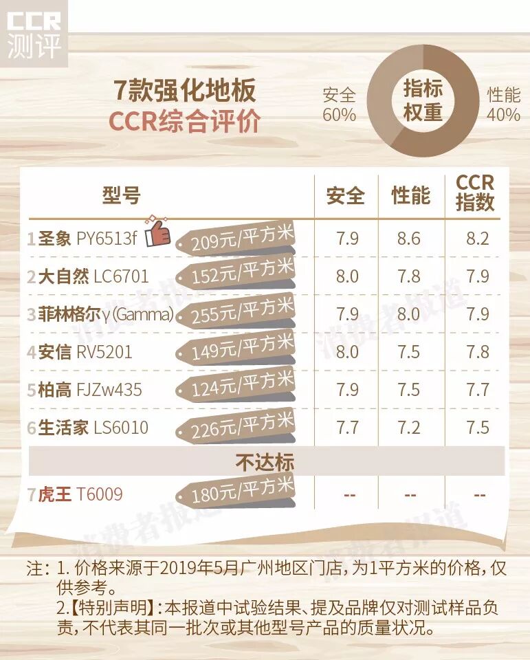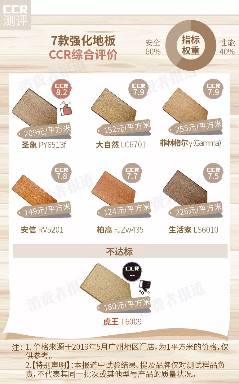 综合安全、性能指标,我们得出7款木地板的综合CCR评分。
